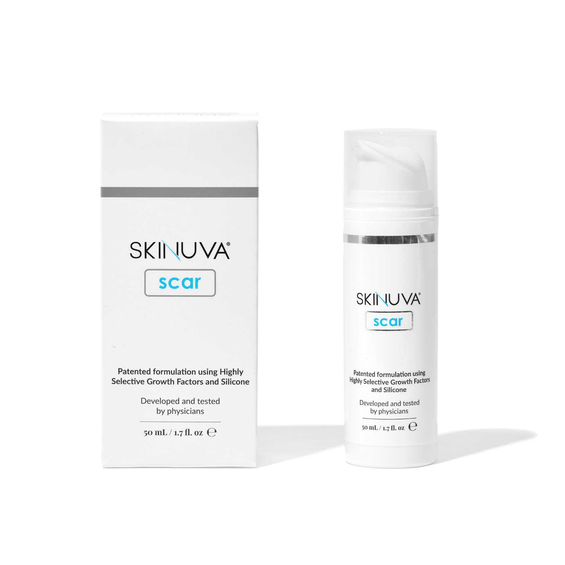Skinuva Scar is a physician developed and clinically tested scar cream that uses highly selective Growth Factors within a Silicone cream matrix to help improve the appearance of scars. Rigorous clinical studies have shown that Skinuva Scar improves the appearance of scars nearly 2x more when compared to Silicone cream. Clinical data also shows that Skinuva Scar is effective in helping improve the appearance of stretch marks and facilitating the body's own healing process after laser, microneedling, and chemical peel treatments.